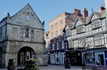 Bull (Butcher Row), House of the Rising Sun (Butcher Row), Loggerheads (Church Street), Cromwell's (Dogpole), Nag's Head (Wyle Cop), Henry Tudor House (Wyle Cop), Lion Hotel (Wyle Cop), Wheatsheaf/Old Post Office (Milk Street), Golden Cross (Princess Street), Old Plough (Square), Cross Keys (High Street), Three Fishes (Fish Street)
